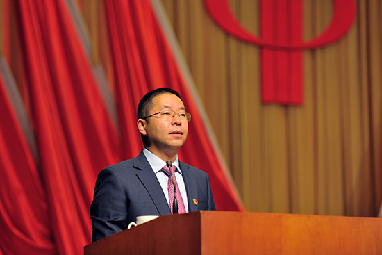 中信特钢集团副总裁,新冶钢党委书记、总经理李国忠作报告